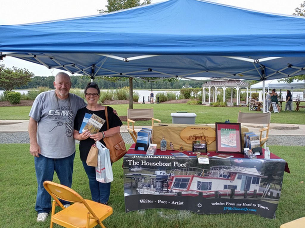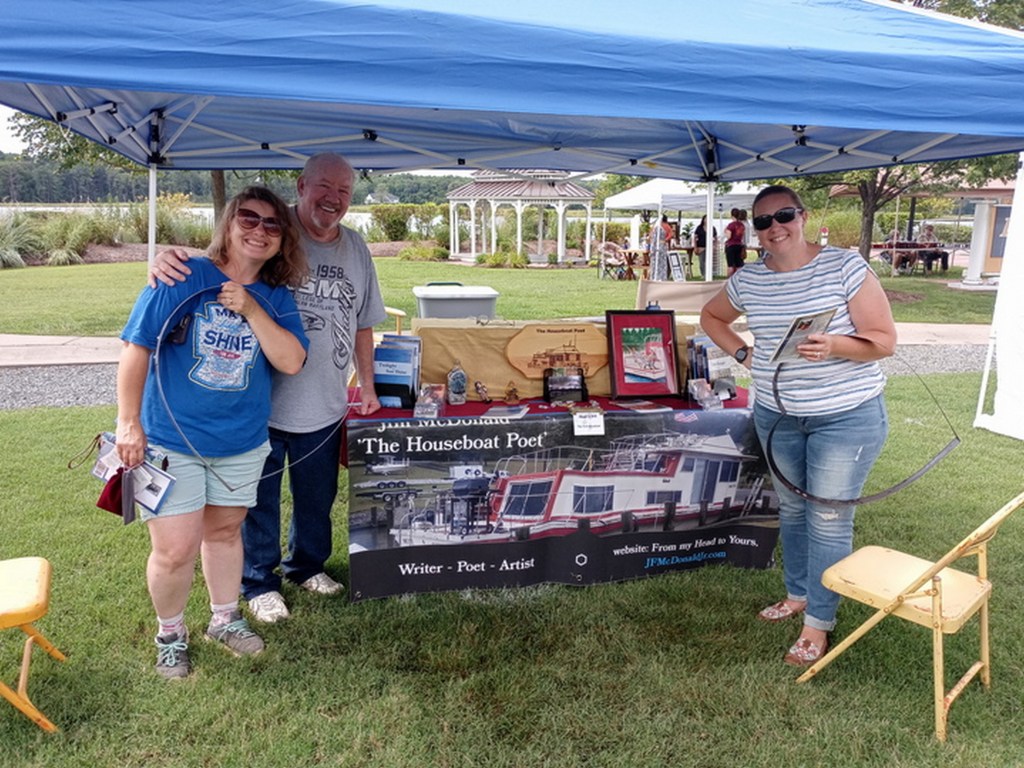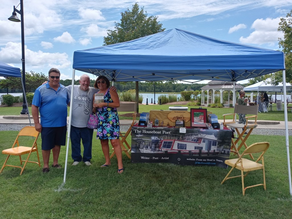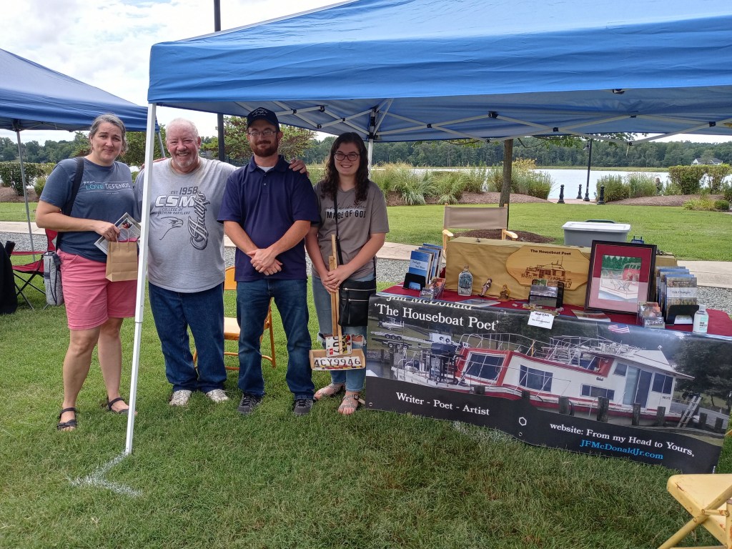 Had good weather for Coastal Arts Market (CAM) on Saturday August 21st at the Leonardtown Wharf in Southern Maryland. Anytime I get to talk to someone about my poetry feels good, but when they buy my books of poetry it’s a great feeling. That means someone wanted to read what I have to say – sold nine books. A few bought both books. I love all my new friends, but the lady standing next to me in the first photo read a third of my first book right there in front of me and she was ecstatic over every poem she read aloud. I was tearing up during that, but of course I hid that little tidbit.